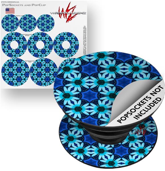 Decal Style Vinyl Skin Wrap 3 Pack for PopSockets Daisies Blue (POPSOCKET NOT INCLUDED)