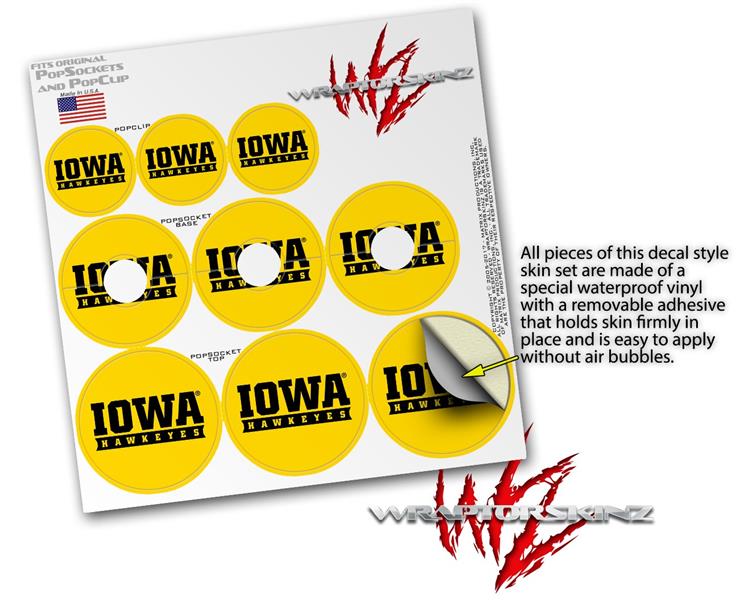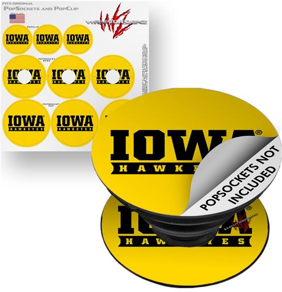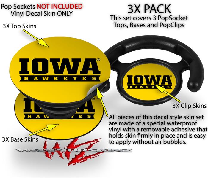 Decal Style Vinyl Skin Wrap 3 Pack for PopSockets Iowa Hawkeyes 03 Gold on Black (POPSOCKET NOT INCLUDED)