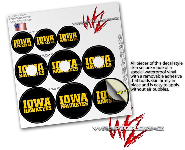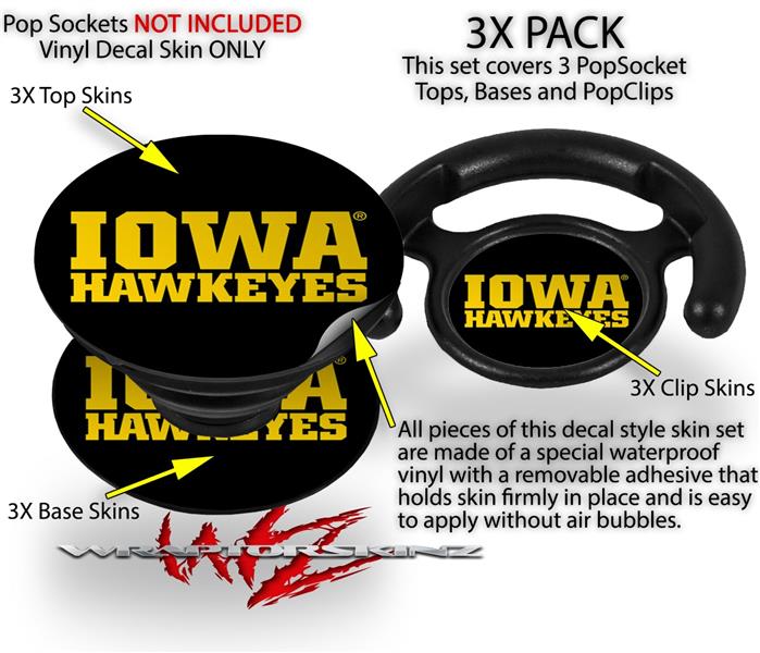 Decal Style Vinyl Skin Wrap 3 Pack for PopSockets Iowa Hawkeyes 01 Gold on Black (POPSOCKET NOT INCLUDED)