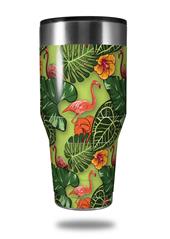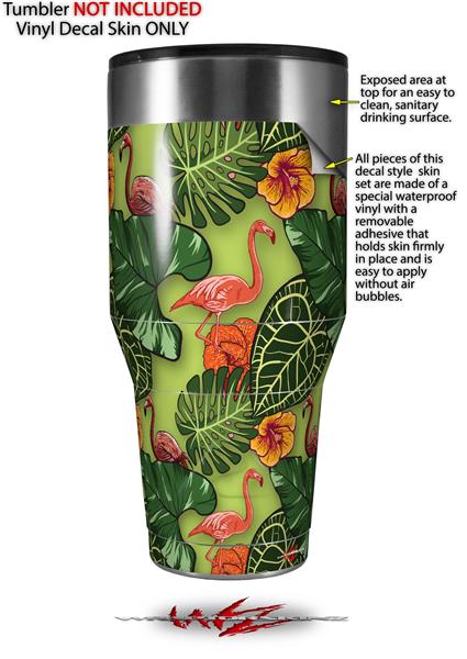 Skin Decal Wrap for Walmart Ozark Trail Tumblers 40oz Famingos and Flowers Sage Green (TUMBLER NOT INCLUDED) by WraptorSkinz