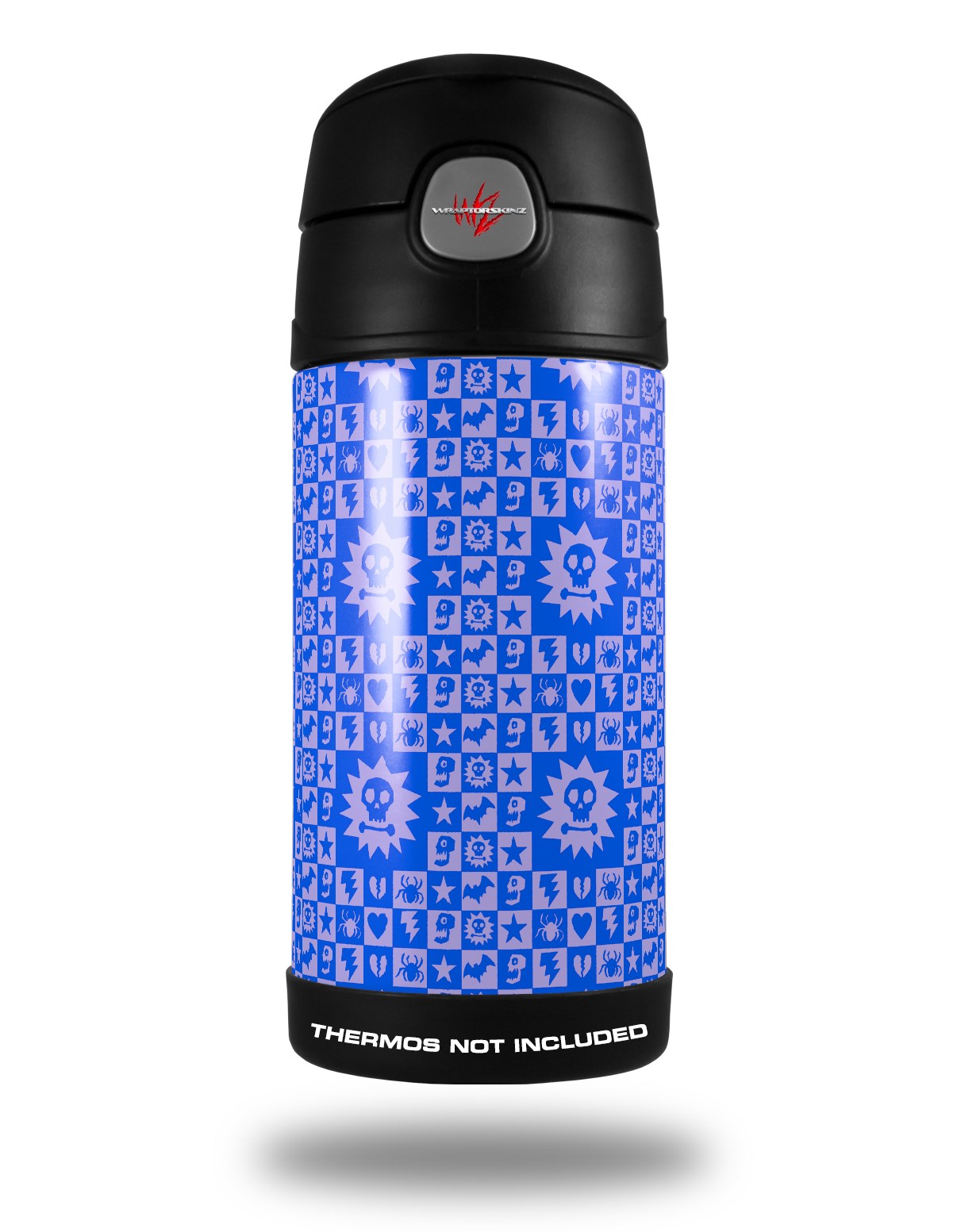 Skin Decal Wrap for Thermos Funtainer 12oz Bottle Gothic Punk Pattern Blue (BOTTLE NOT INCLUDED) by WraptorSkinz