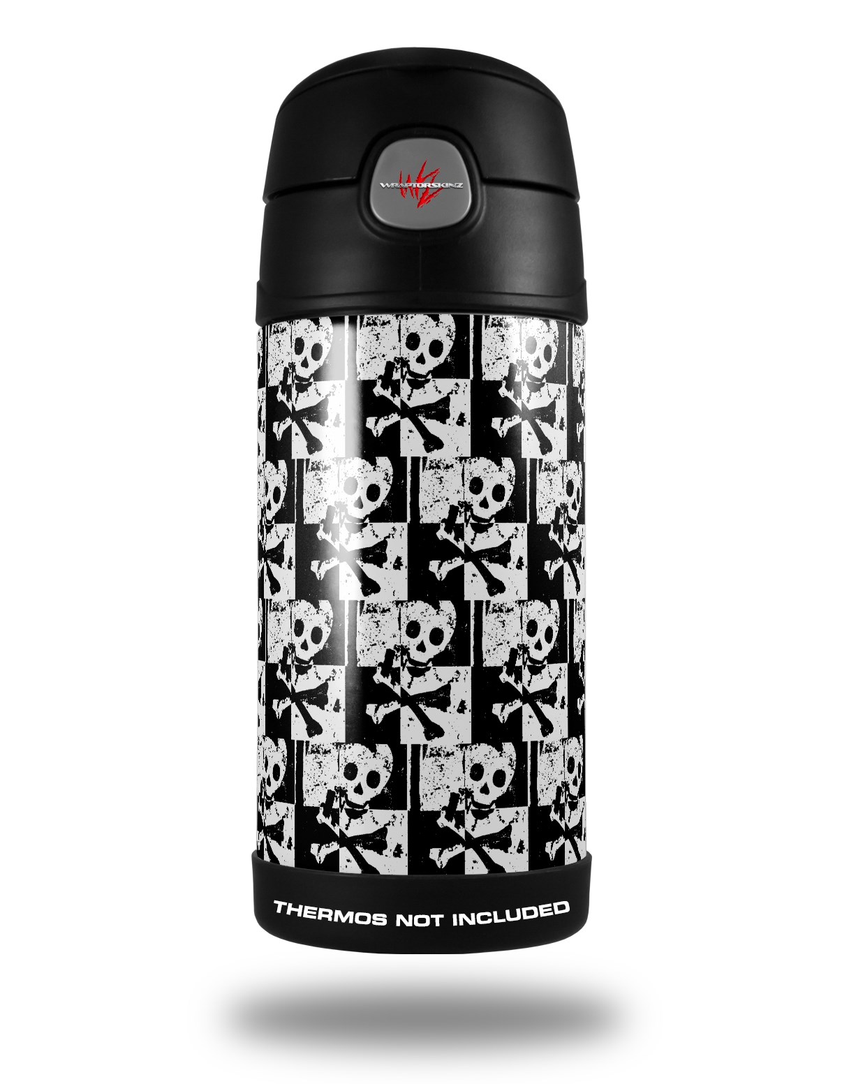 Skin Decal Wrap for Thermos Funtainer 12oz Bottle Skull Checker (BOTTLE NOT INCLUDED) by WraptorSkinz
