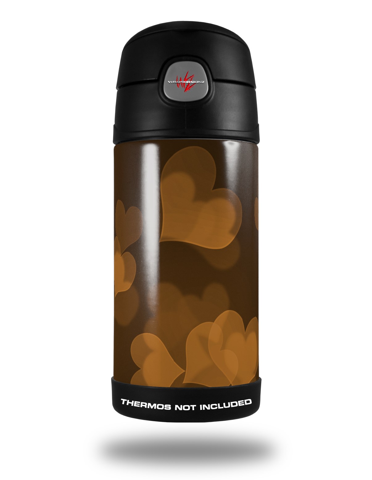 Skin Decal Wrap for Thermos Funtainer 12oz Bottle Bokeh Hearts Orange (BOTTLE NOT INCLUDED) by WraptorSkinz