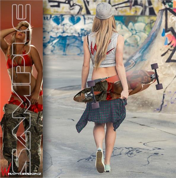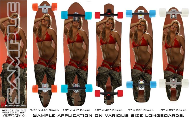 Becca Faye - Red Lingerie and Camo - Decal Style Vinyl Wrap Skin fits Longboard Skateboards up to 10"x42" (LONGBOARD NOT INCLUDED)