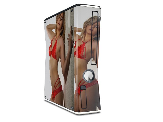 Becca Faye - Red Lingerie Decal Style Skin for XBOX 360 Slim Vertical