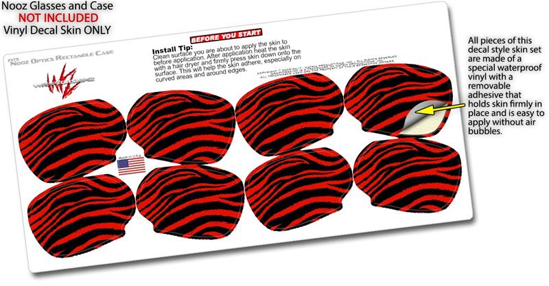 Decal Style Vinyl Skin Wrap 2 Pack for Nooz Glasses Rectangle Case Zebra Red (NOOZ NOT INCLUDED) by WraptorSkinz