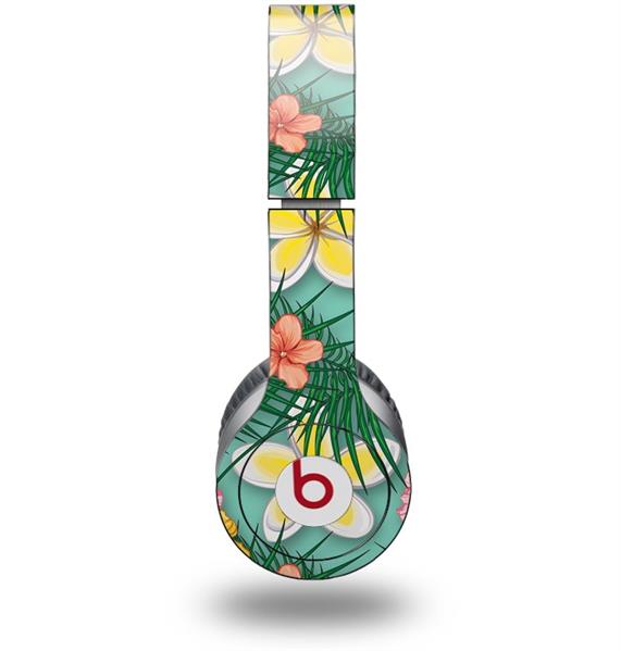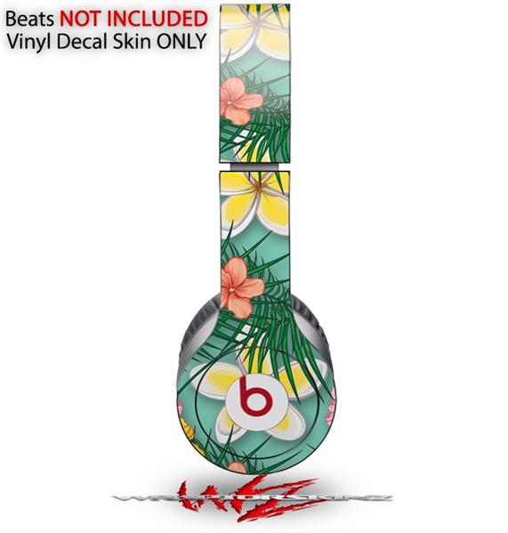 WraptorSkinz Skin Decal Wrap compatible with Beats Solo HD (Original) Beach Flowers 02 Seafoam Green (HEADPHONES NOT INCLUDED)