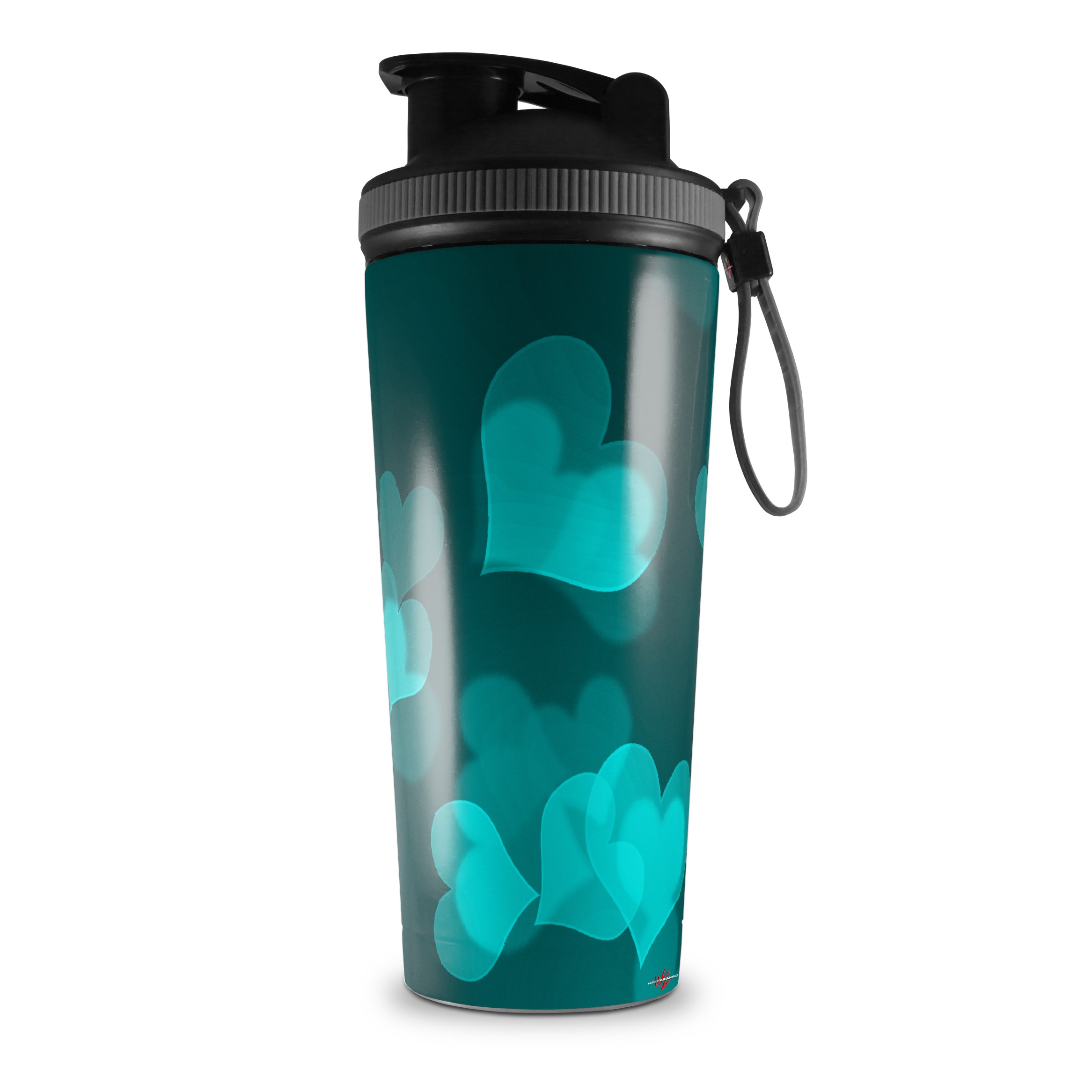 Skin Wrap Decal for IceShaker 2nd Gen 26oz Bokeh Hearts Neon Teal (SHAKER NOT INCLUDED)