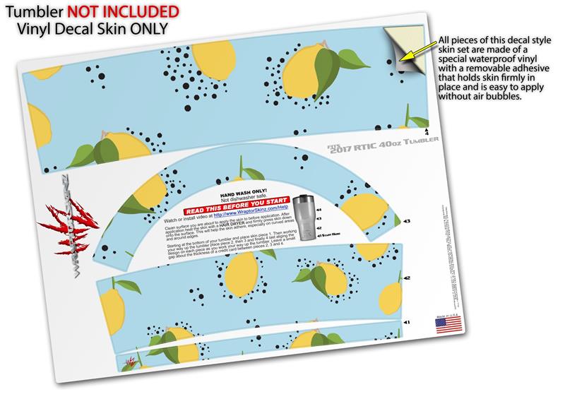 Skin Wrap Decal for 2017 RTIC Tumblers 40oz Lemon Blue (TUMBLER NOT INCLUDED)