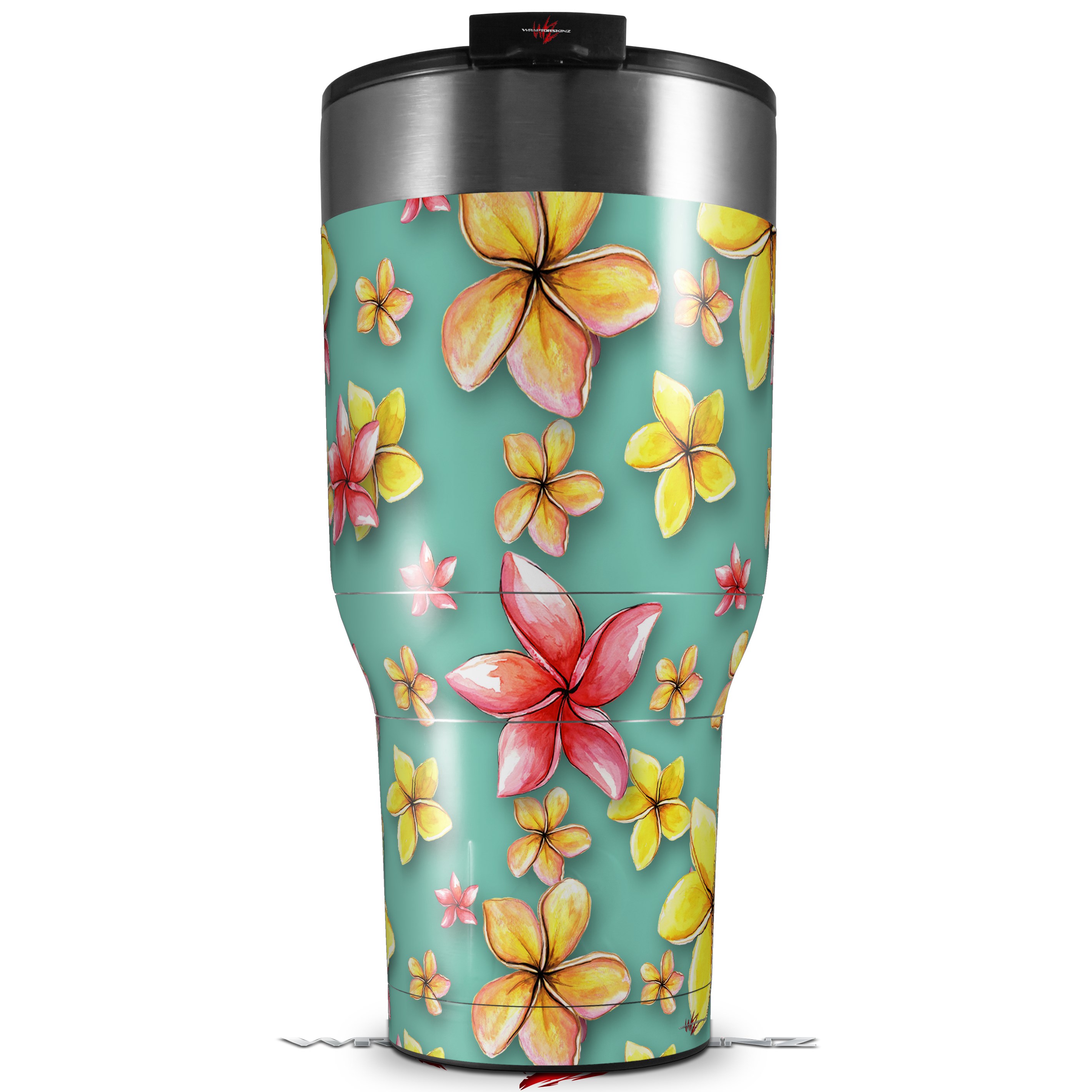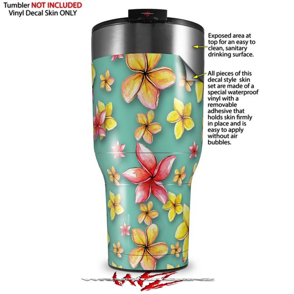 Skin Wrap Decal for 2017 RTIC Tumblers 40oz Beach Flowers Seafoam Green (TUMBLER NOT INCLUDED)