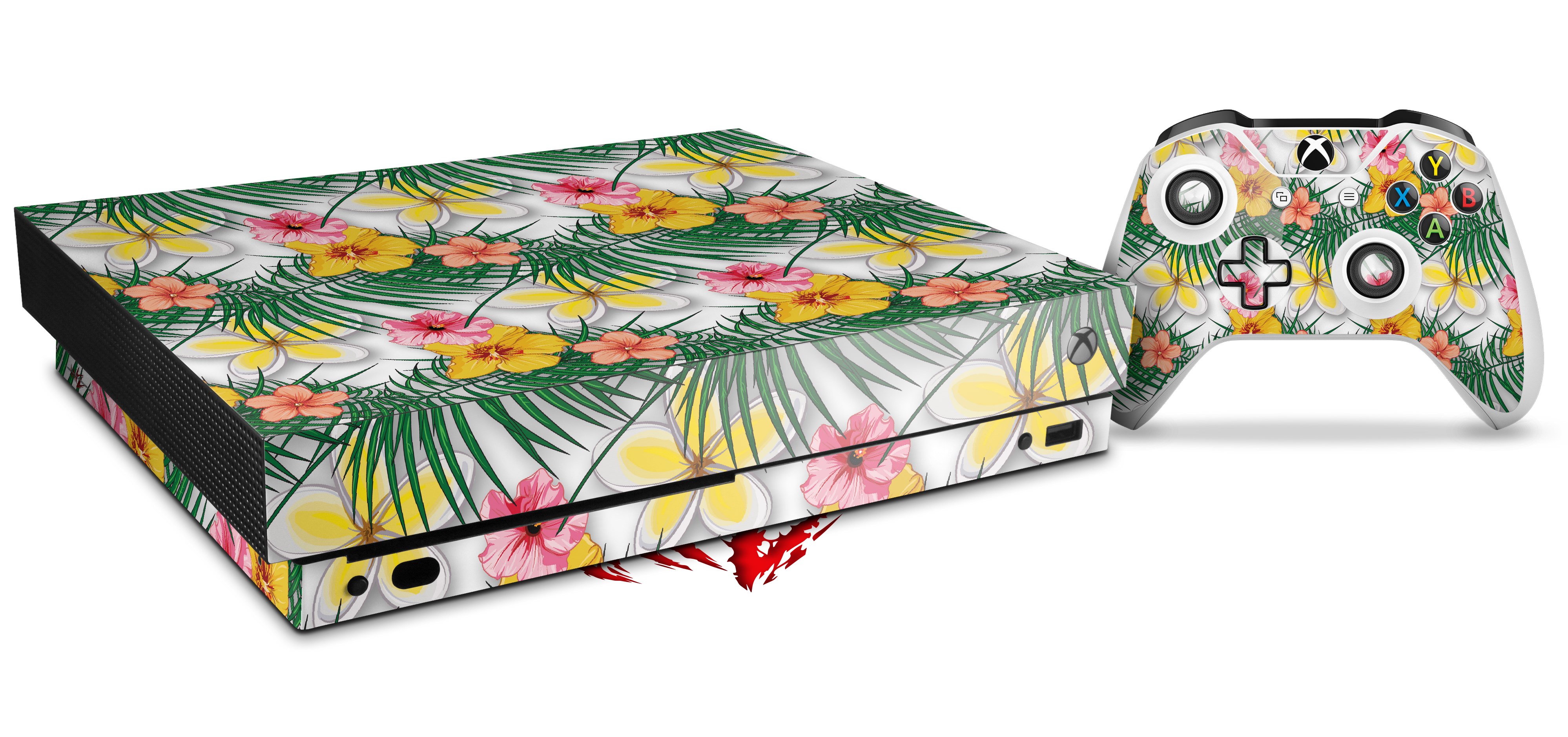 Skin Wrap for XBOX One X Console and Controller Beach Flowers 02 White