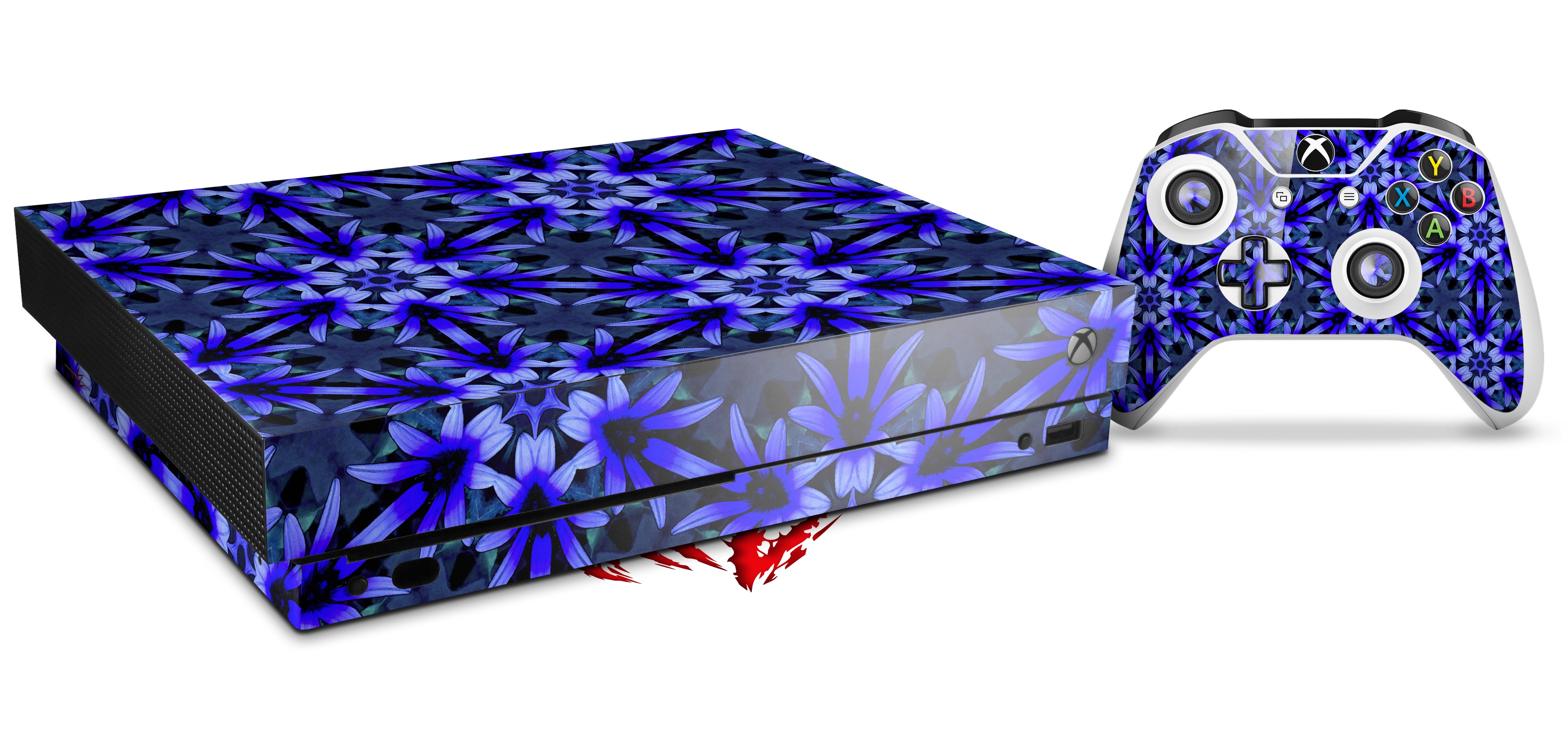 Skin Wrap for XBOX One X Console and Controller Daisy Blue