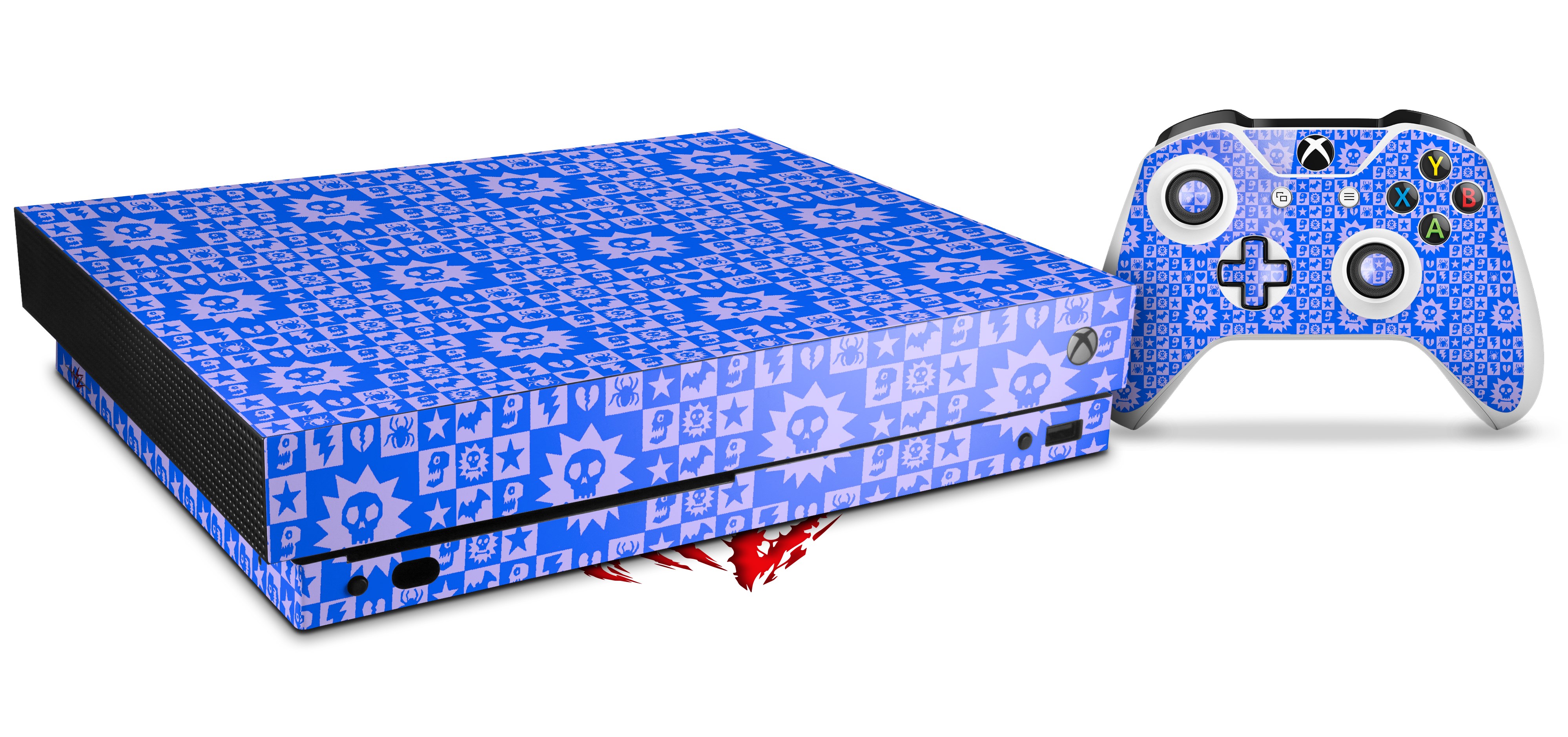 Skin Wrap for XBOX One X Console and Controller Gothic Punk Pattern Blue