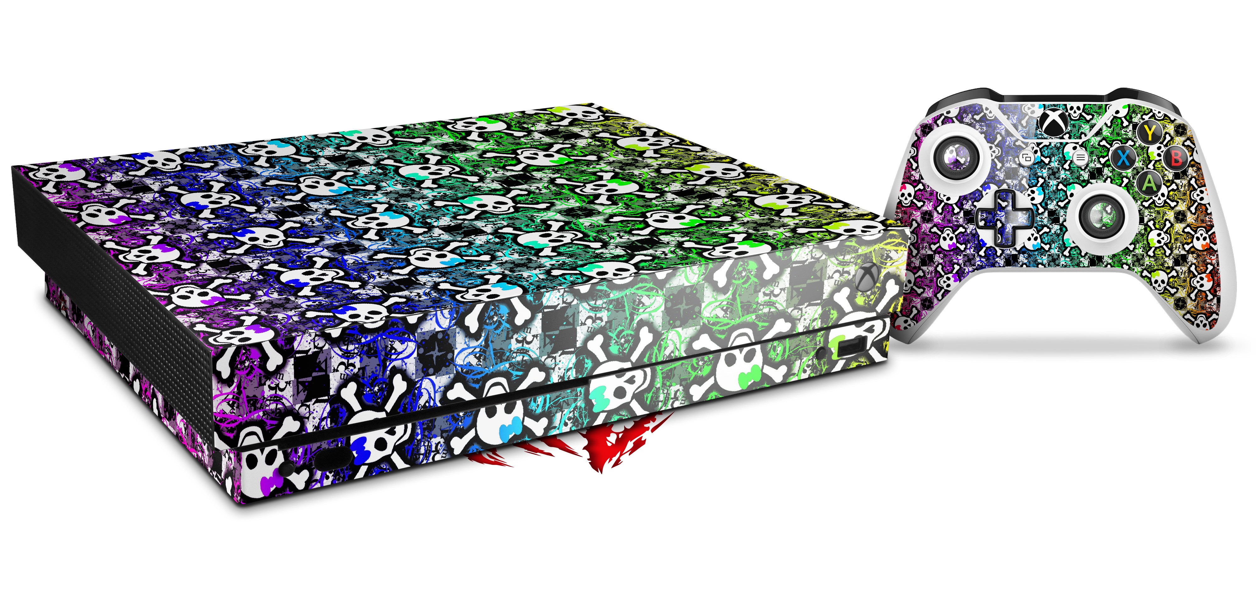 Skin Wrap for XBOX One X Console and Controller Splatter Girly Skull Rainbow