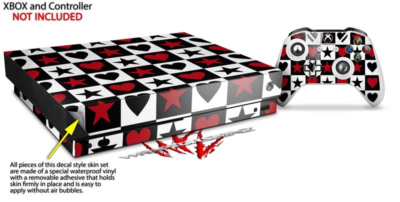 Skin Wrap for XBOX One X Console and Controller Hearts and Stars Red