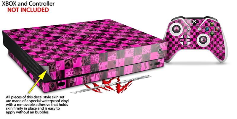 Skin Wrap for XBOX One X Console and Controller Pink Checkerboard Sketches