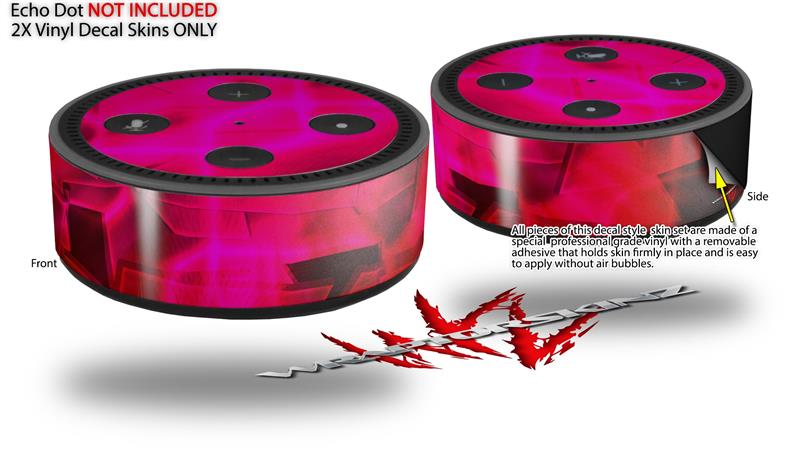 Skin Wrap Decal Set 2 Pack for Amazon Echo Dot 2 - Cubic Shards Red (2nd Generation ONLY - Echo NOT INCLUDED)