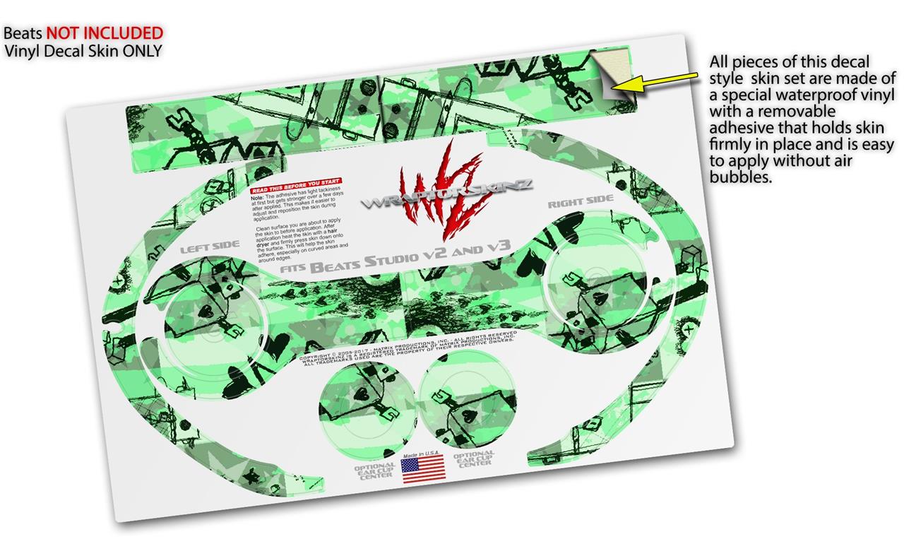 WraptorSkinz Skin Decal Wrap compatible with Beats Studio 2 and 3 Wired and Wireless Headphones Scene Kid Sketches Green Skin Only (HEADPHONES NOT INCLUDED)