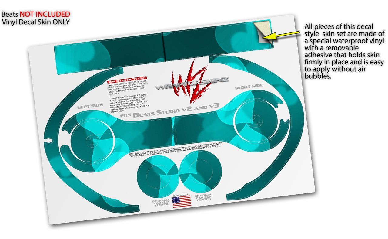 WraptorSkinz Skin Decal Wrap compatible with Beats Studio 2 and 3 Wired and Wireless Headphones Bokeh Hearts Neon Teal Skin Only (HEADPHONES NOT INCLUDED)