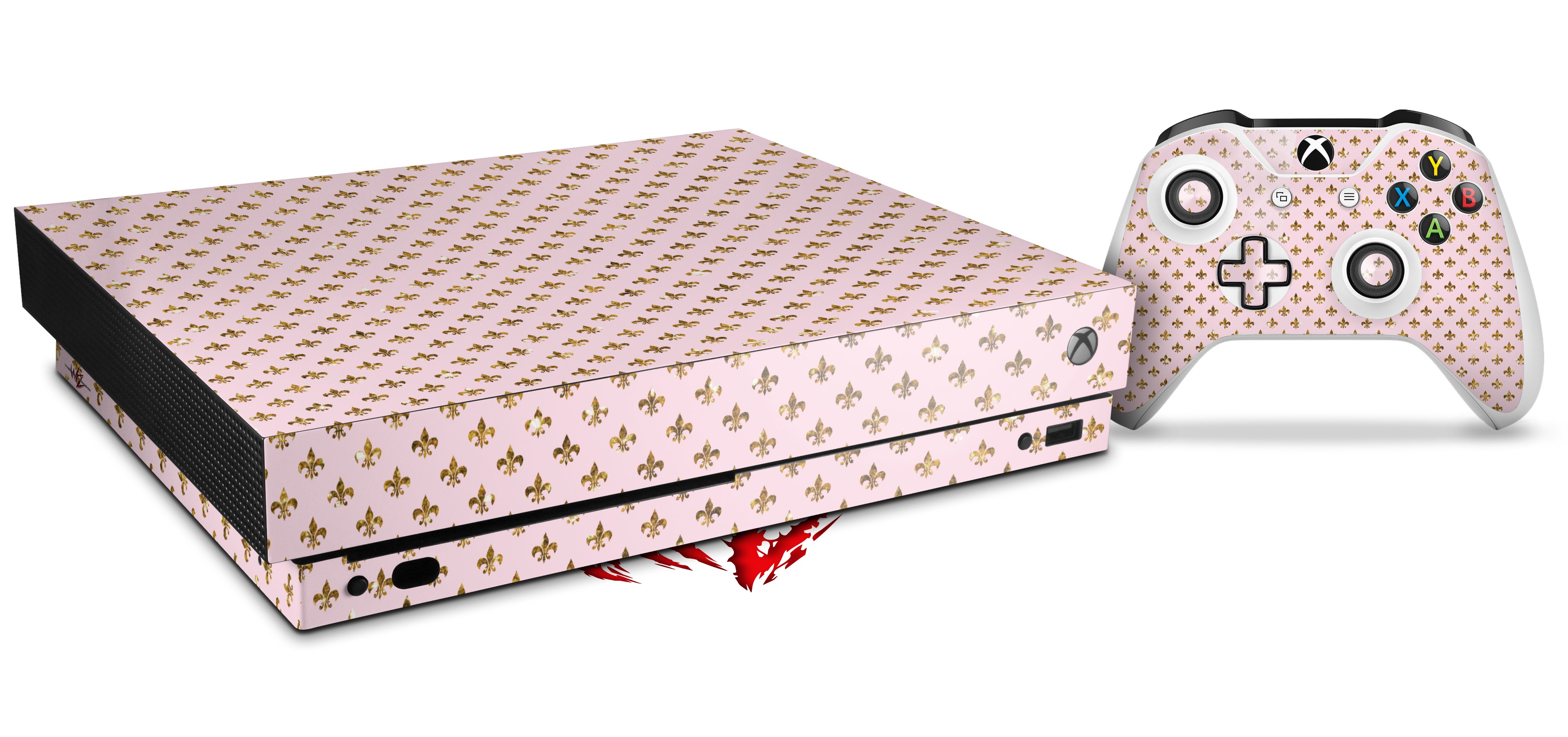 Skin Wrap for XBOX One X Console and Controller Gold Fleur-de-lis
