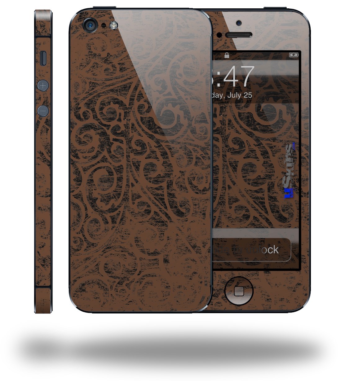 Folder Doodles Chocolate Brown - Decal Style Vinyl Skin (fits Apple Original iPhone 5, NOT the iPhone 5C or 5S)
