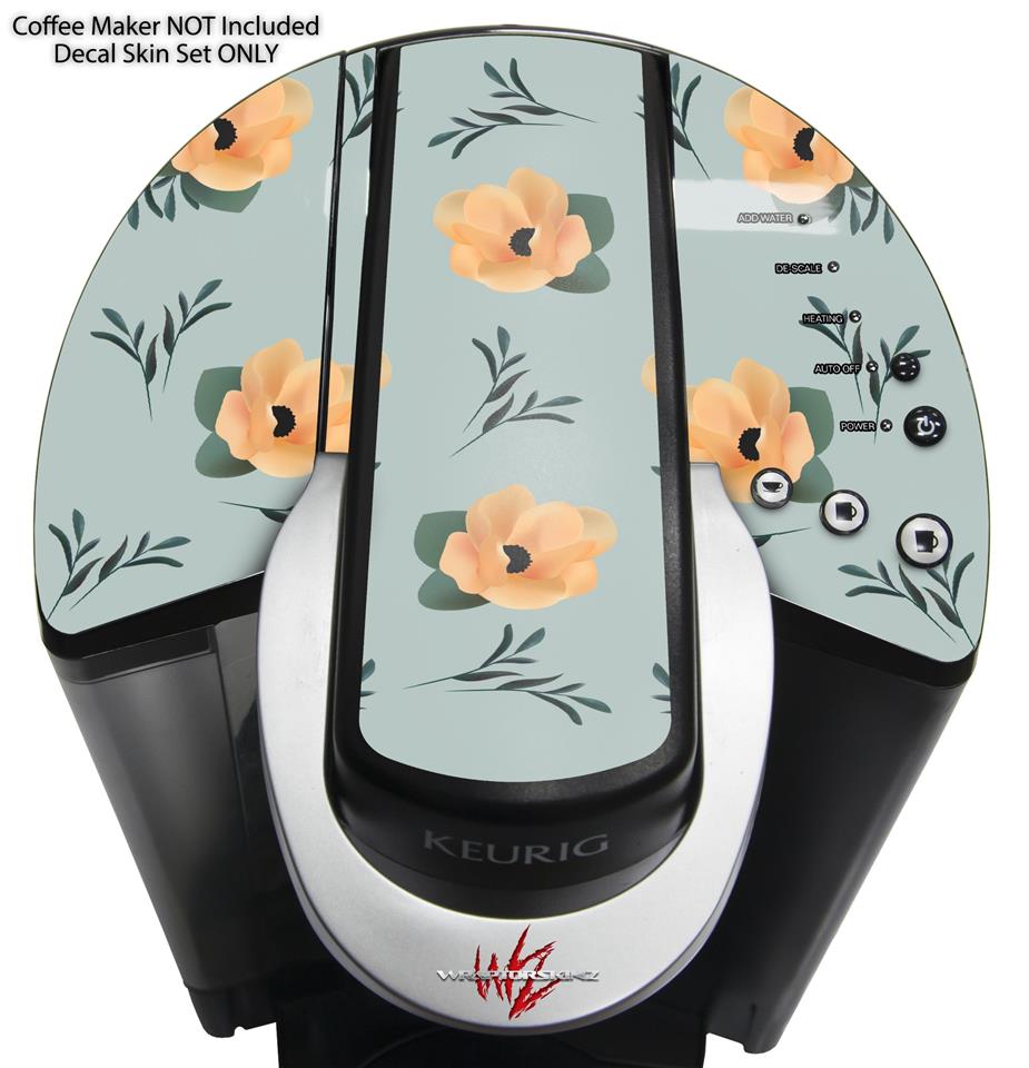 Decal Style Vinyl Skin compatible with Keurig K40 Elite Coffee Makers Poppy Orange Light Blue (KEURIG NOT INCLUDED)