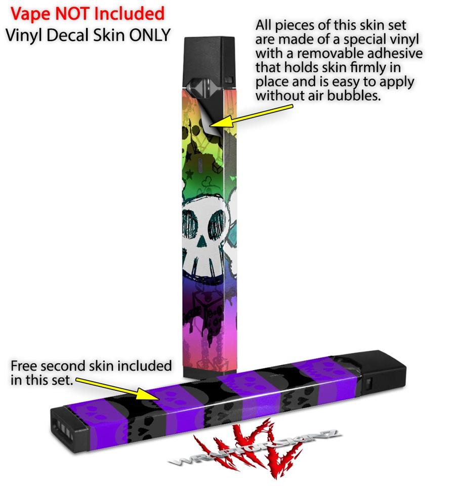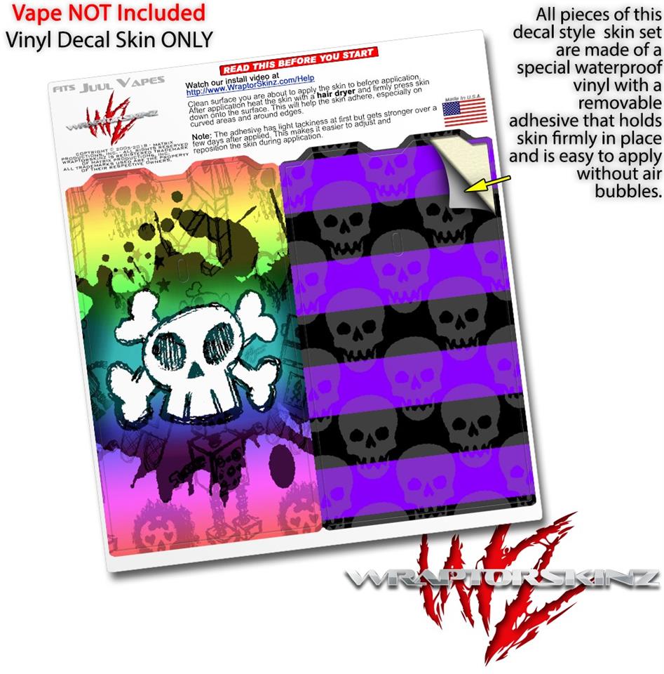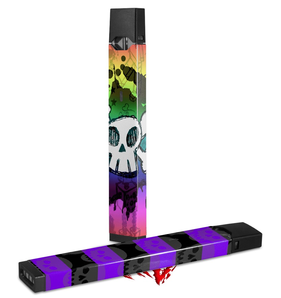 Skin Decal Wrap 2 Pack for Juul Vapes Cartoon Skull Rainbow JUUL NOT INCLUDED