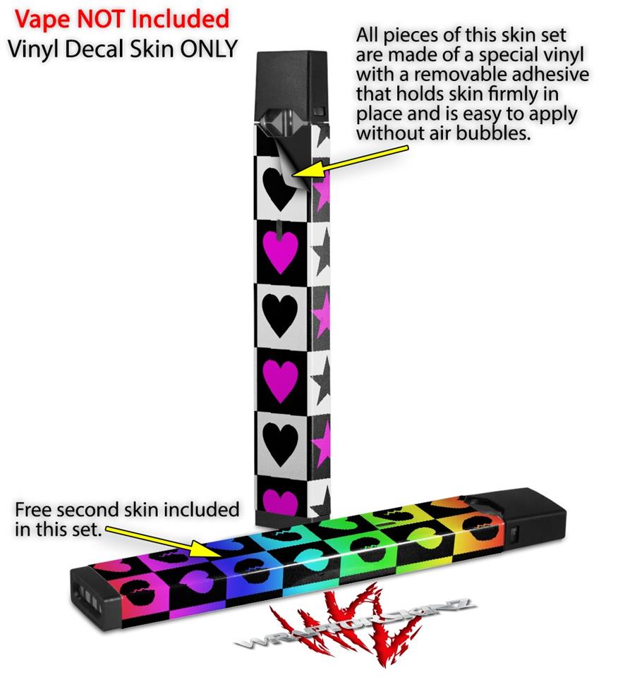 Skin Decal Wrap 2 Pack for Juul Vapes Hearts And Stars Pink JUUL NOT INCLUDED