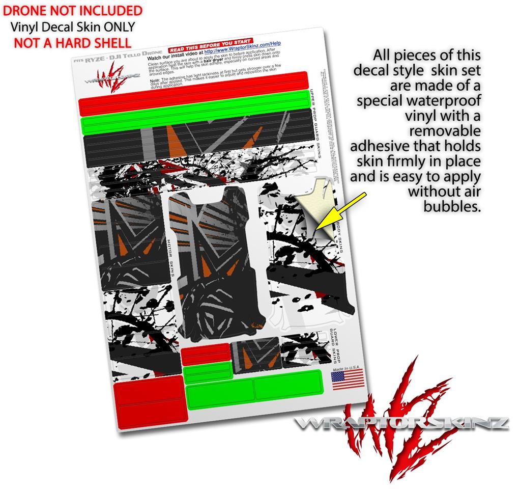 WraptorSkinz® skin wraps are printed using superb photo quality designs and vibrant colors printed with special fade resistant inks that last even in direct sun for years. WraptorSkinz are a composite of two layers of commercial grade materials. The bottom layer is a soft, flexible vinyl with a special removable adhesive that is easily positioned, applied without air bubbles. Next we print the bottom layer with UV protected, fade resistant inks that deliver superb photo quality designs in vibrant colors. Finally we bond a professional grade laminate over the entire skin adding a glossy protective finish. This product is not affiliated with or endorsed by the Ryze or DJI brand.