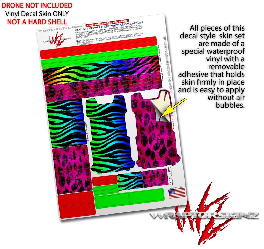 Skin Decal Wrap 2 Pack for DJI Ryze Tello Drone Rainbow Zebra DRONE NOT INCLUDED