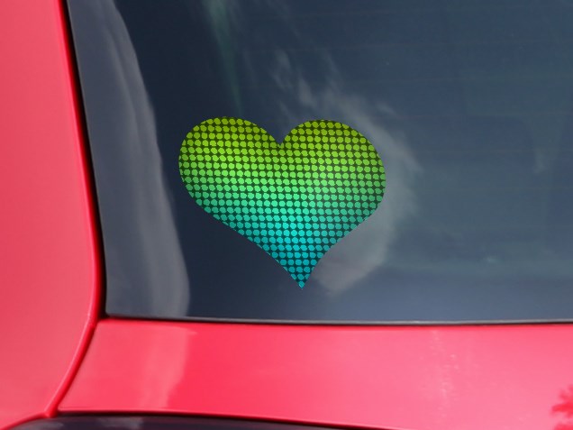 Faded Dots Neon Teal Green - I Heart Love Car Window Decal 6.5 x 5.5 inches