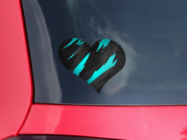 Jagged Camo Neon Teal - I Heart Love Car Window Decal 6.5 x 5.5 inches
