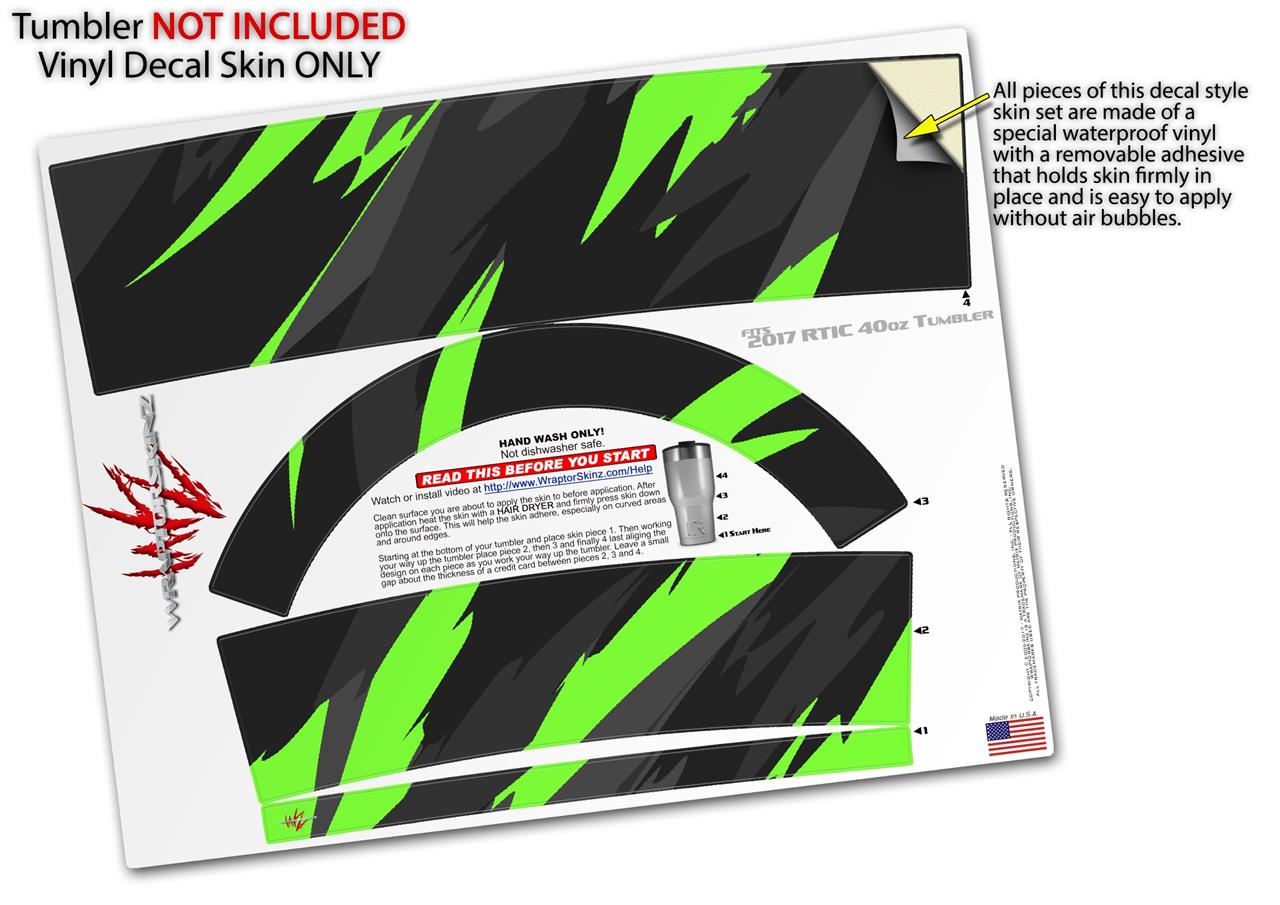 Skin Wrap Decal for 2017 RTIC Tumblers 40oz Jagged Camo Neon Green (TUMBLER NOT INCLUDED)