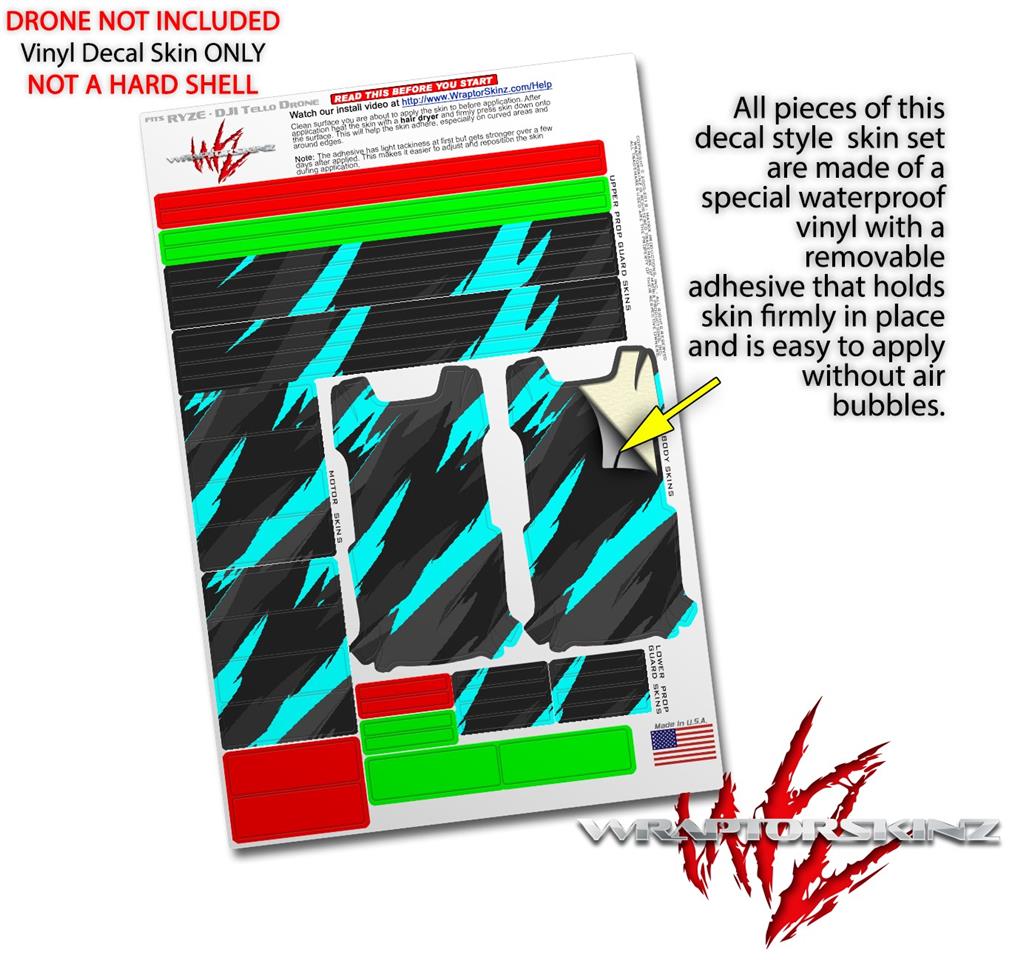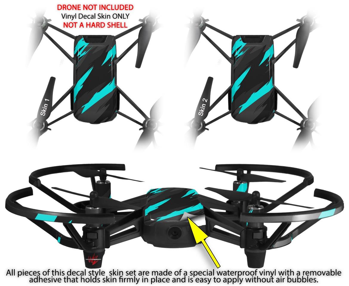 Skin Decal Wrap 2 Pack for DJI Ryze Tello Drone Jagged Camo Neon Teal DRONE NOT INCLUDED