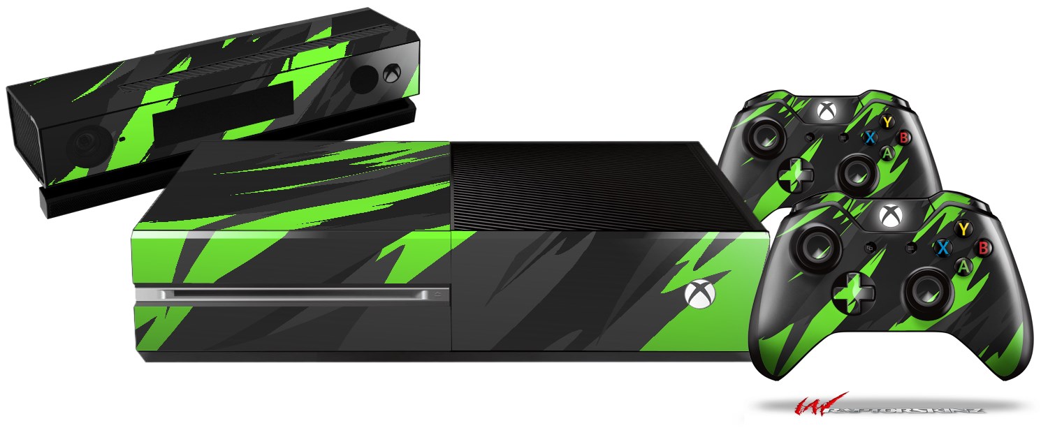Jagged Camo Neon Green - Holiday Bundle Decal Style Skin fits XBOX One Console Original, Kinect and 2 Controllers (XBOX SYSTEM NOT INCLUDED)