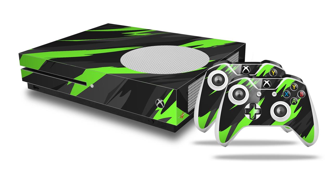 WraptorSkinz Decal Skin Wrap Set works with 2016 and newer XBOX One S Console and 2 Controllers Jagged Camo Neon Green