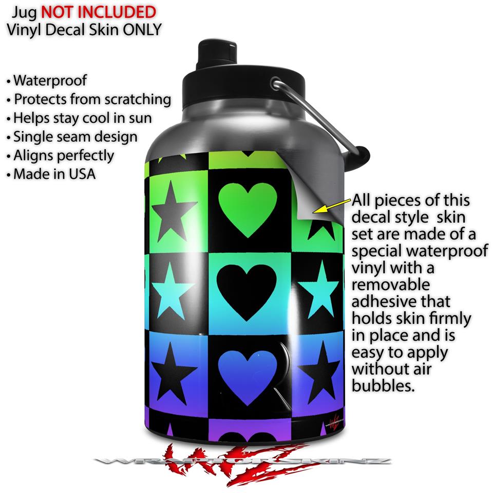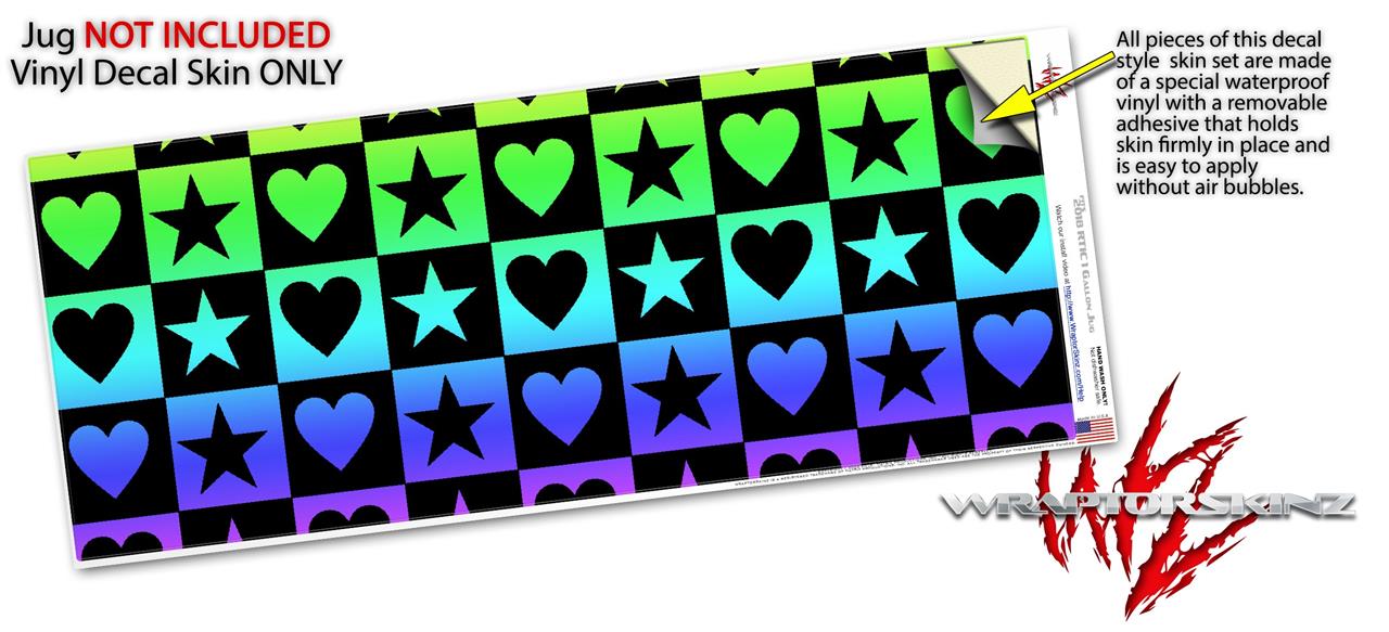 Skin Decal Wrap for 2017 RTIC One Gallon Jug Hearts And Stars Rainbow (Jug NOT INCLUDED) by WraptorSkinz