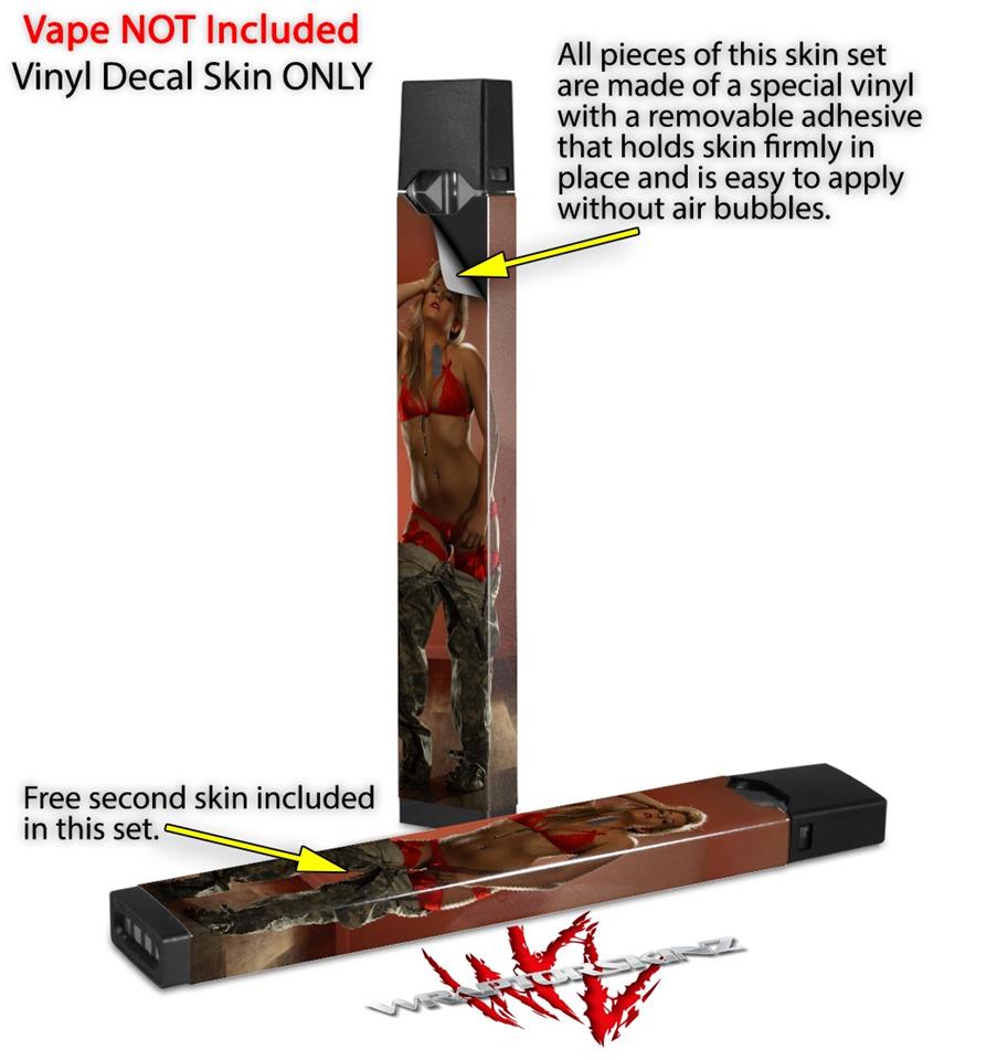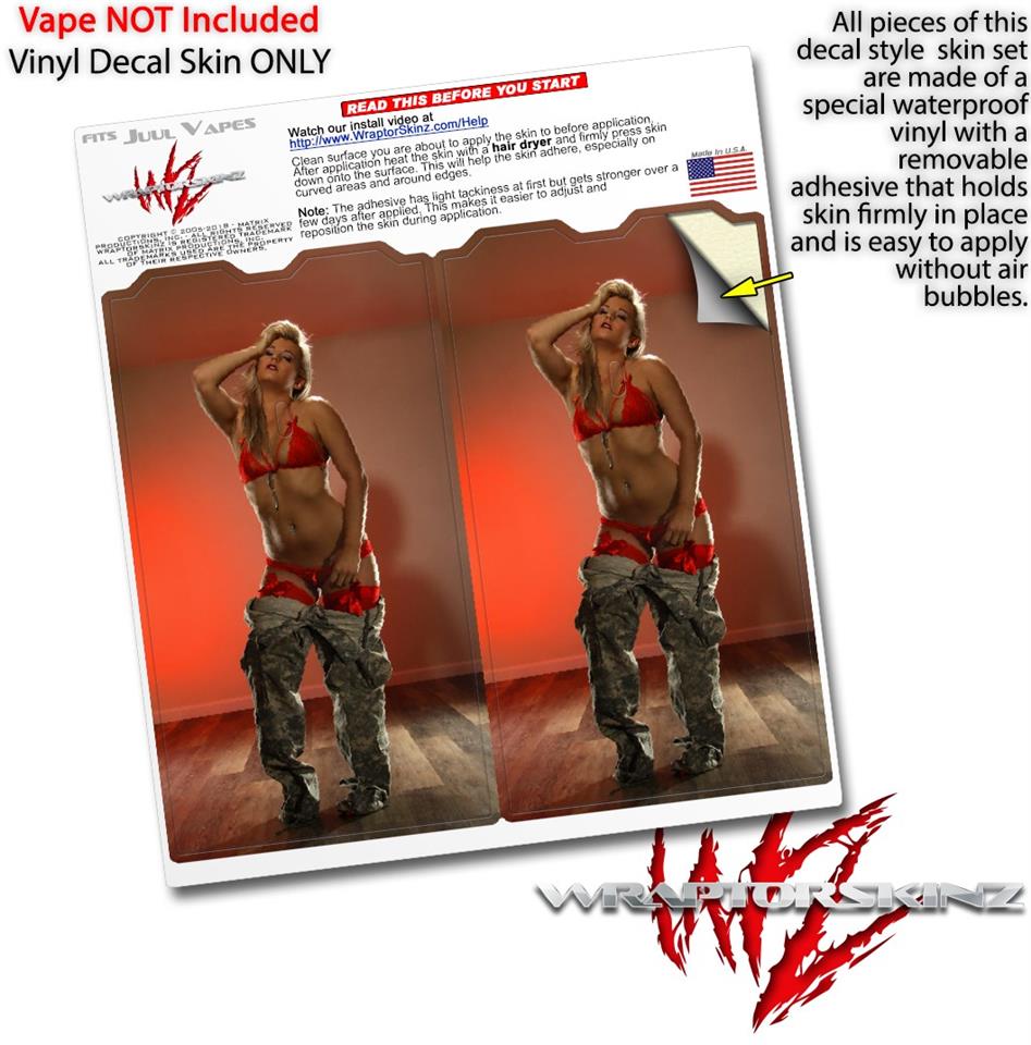 Skin Decal Wrap 2 Pack for Juul Vapes Becca Faye - Red Lingerie and Camo JUUL NOT INCLUDED