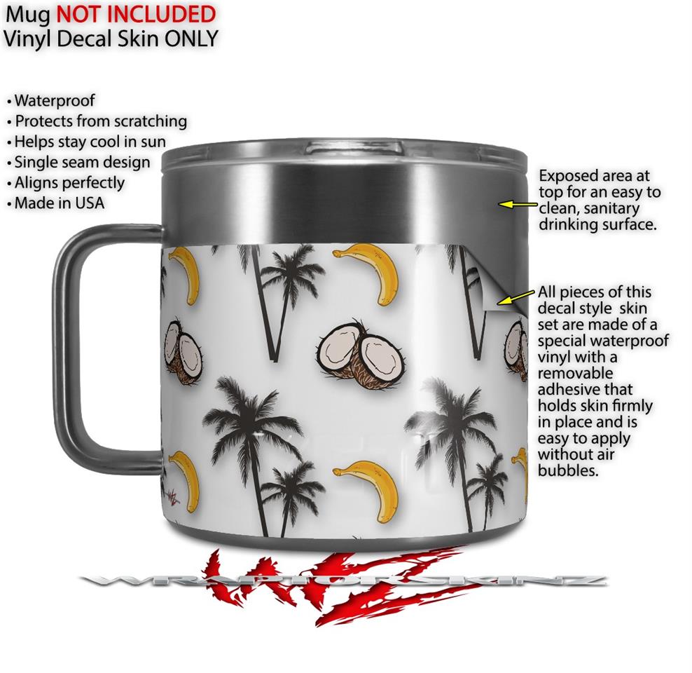 Skin Decal Wrap for Yeti Coffee Mug 14oz Coconuts Palm Trees and Bananas White - 14 oz CUP NOT INCLUDED by WraptorSkinz