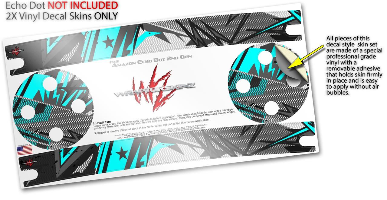 Skin Wrap Decal Set 2 Pack for Amazon Echo Dot 2 - Baja 0032 Neon Teal (2nd Generation ONLY - Echo NOT INCLUDED)