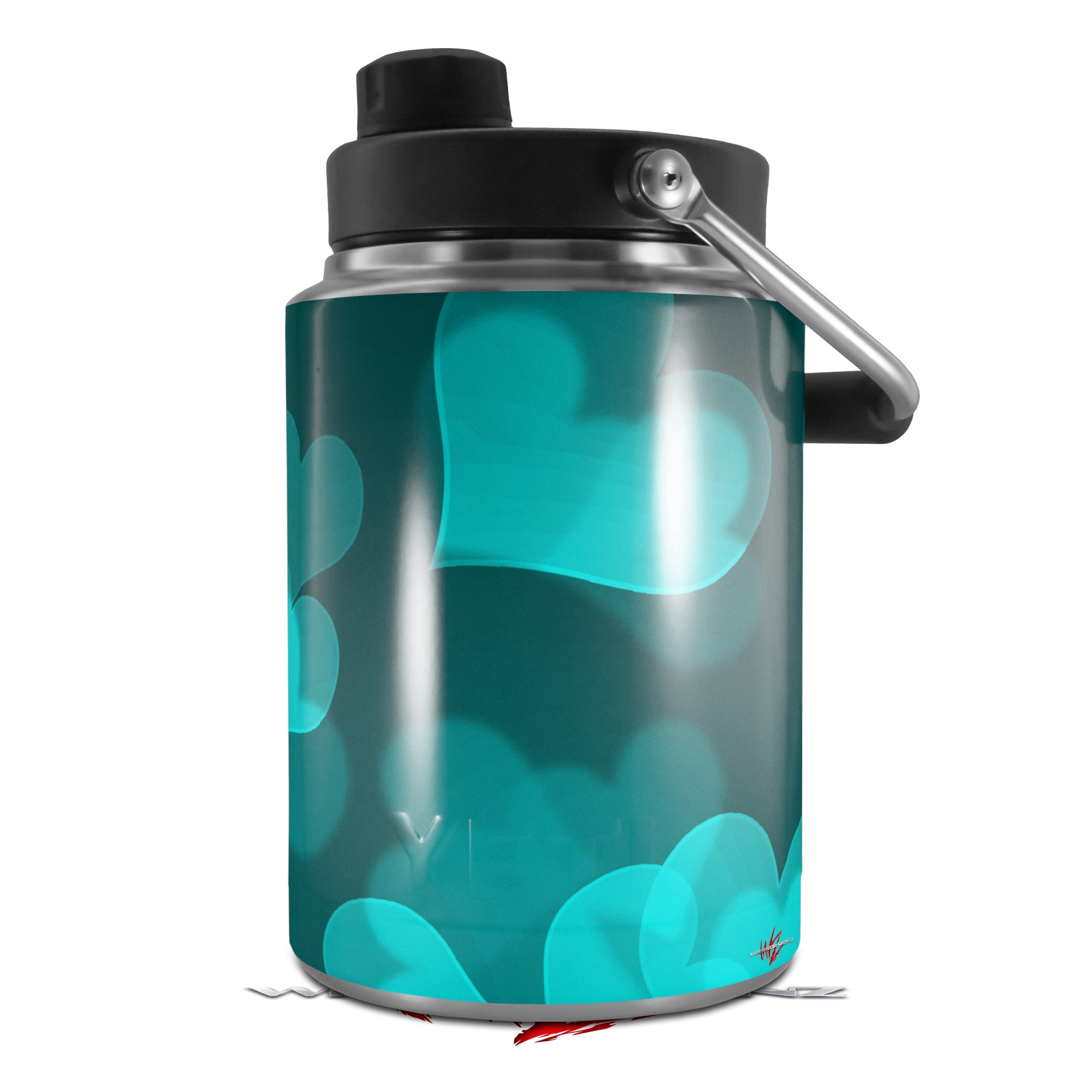 Skin Decal Wrap for Yeti Half Gallon Jug Bokeh Hearts Neon Teal - JUG NOT INCLUDED by WraptorSkinz