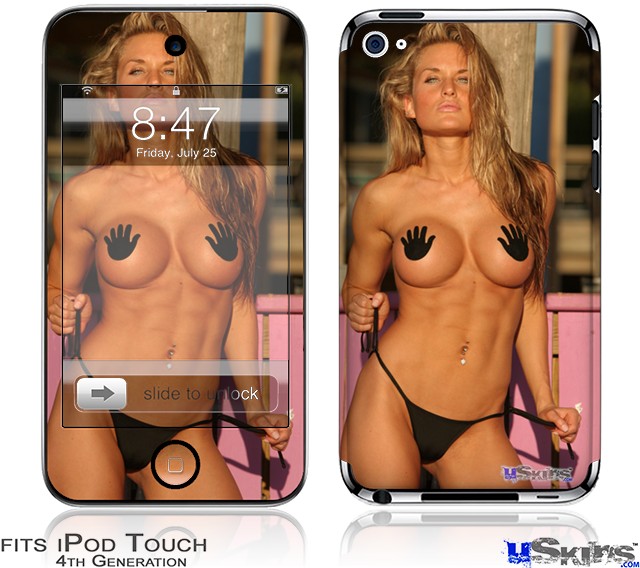 iPod Touch 4G Decal Style Vinyl Skin - Kasie Rae Black Bikini Thong Front