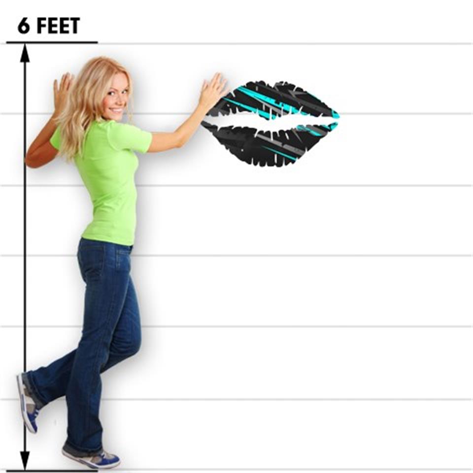 Baja 0014 Neon Teal - Kissing Lips Fabric Wall Skin Decal measures 24x15 inches