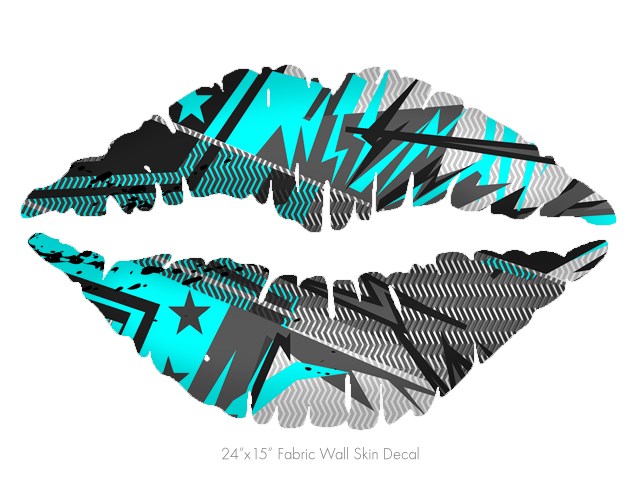 Baja 0032 Neon Teal - Kissing Lips Fabric Wall Skin Decal measures 24x15 inches