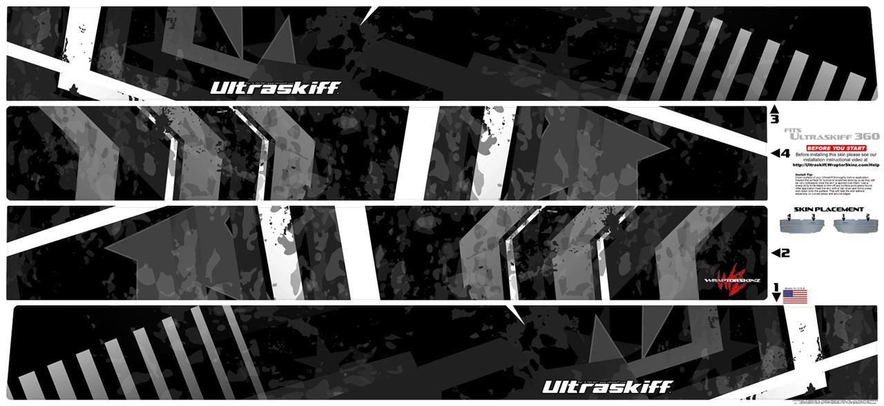 WraptorSkinz® skin wraps for Ultraskiff 360 are printed using superb photo quality designs and vibrant colors printed with special fade resistant inks that last even in direct sun for years. WraptorSkinz® are a composite of two layers of commercial grade materials. The bottom layer is a soft, flexible material with a special ultra-sticky adhesive designed to adhere to plastic body of the Ultraskiff. Next we print the bottom layer with UV protected, fade resistant inks that deliver superb photo quality designs in vibrant colors. Finally we bond a professional grade laminate over the entire skin adding a glossy protective finish.