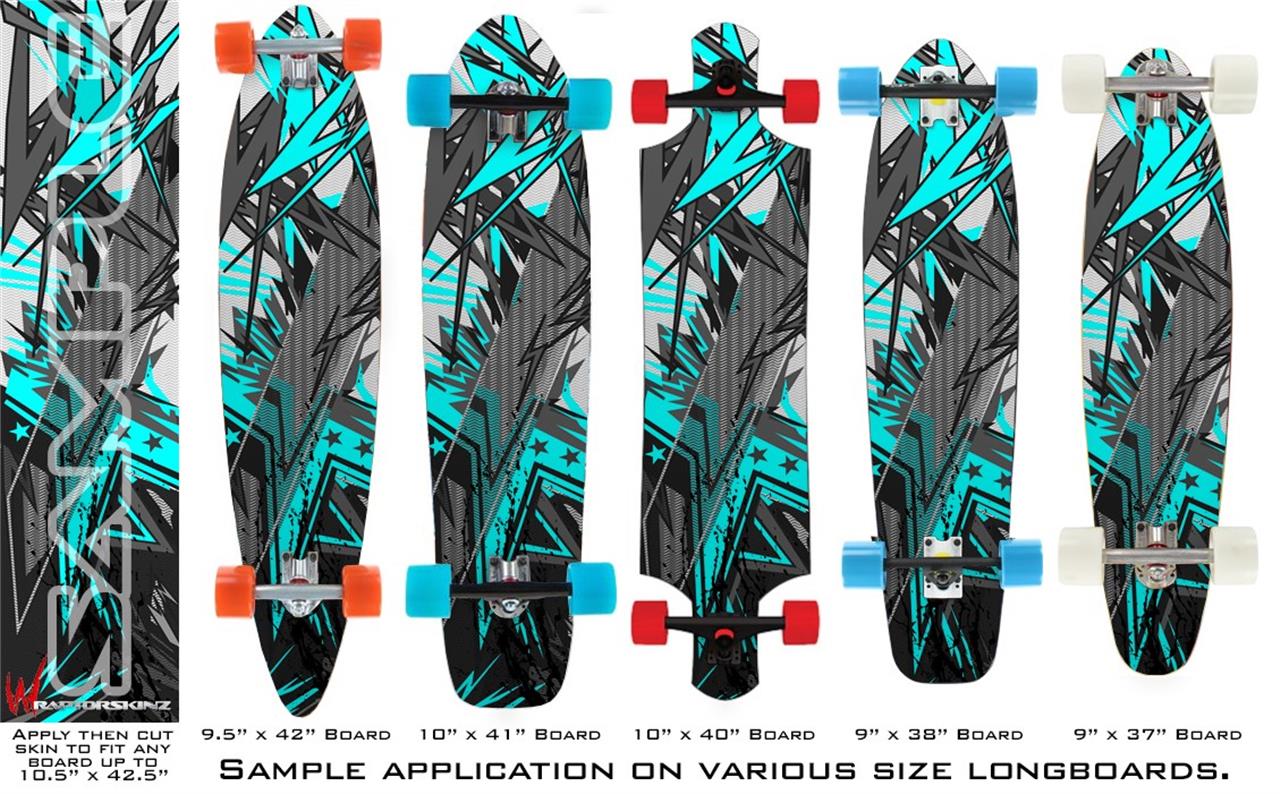 Our longboard skins are made so that one size fits boards up to 10” wide x 42” long. This means after applying the skin it you will trimming to fit you’re the shape of your board with a sharp utility knife.