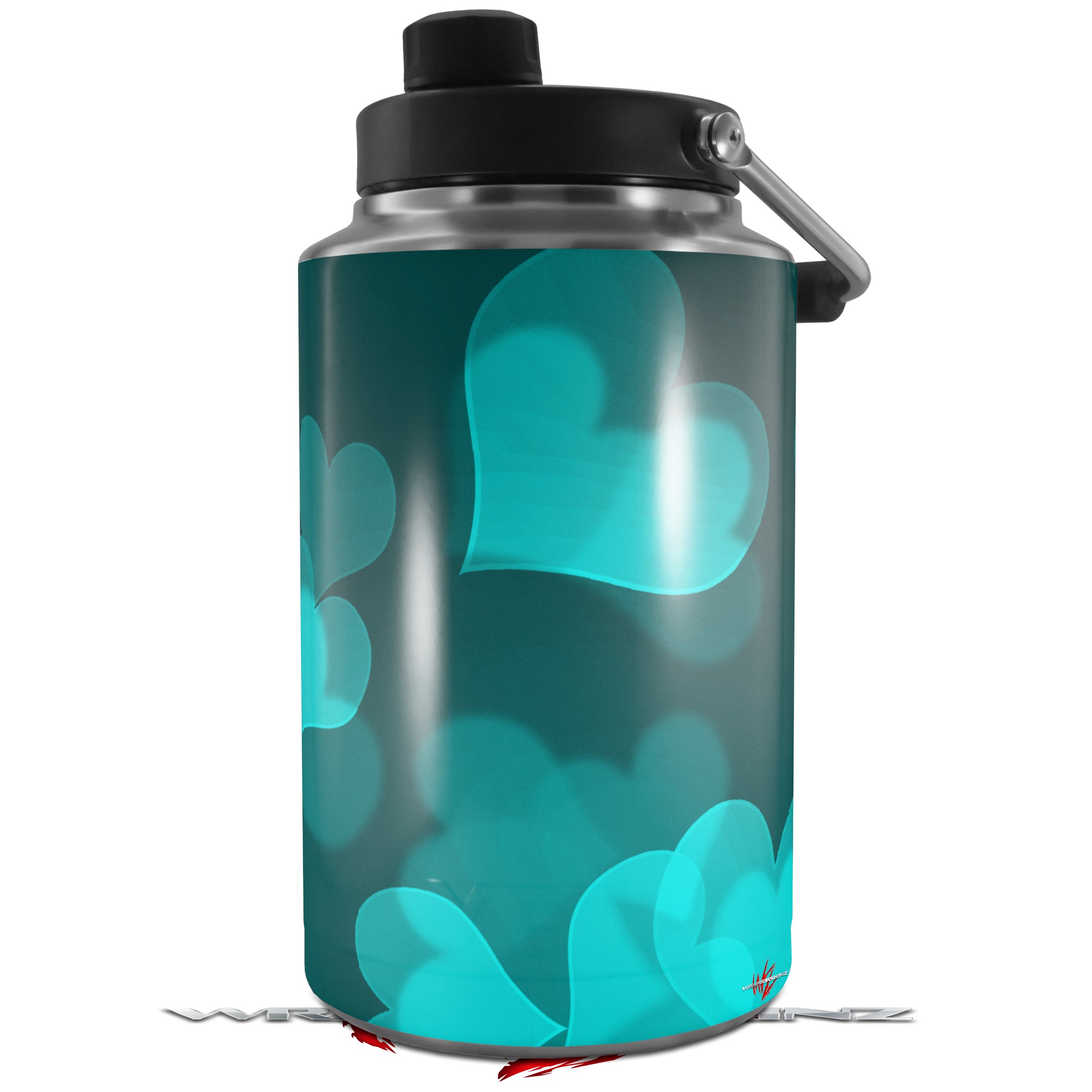 Skin Decal Wrap for Yeti 1 Gallon Jug Bokeh Hearts Neon Teal - JUG NOT INCLUDED by WraptorSkinz