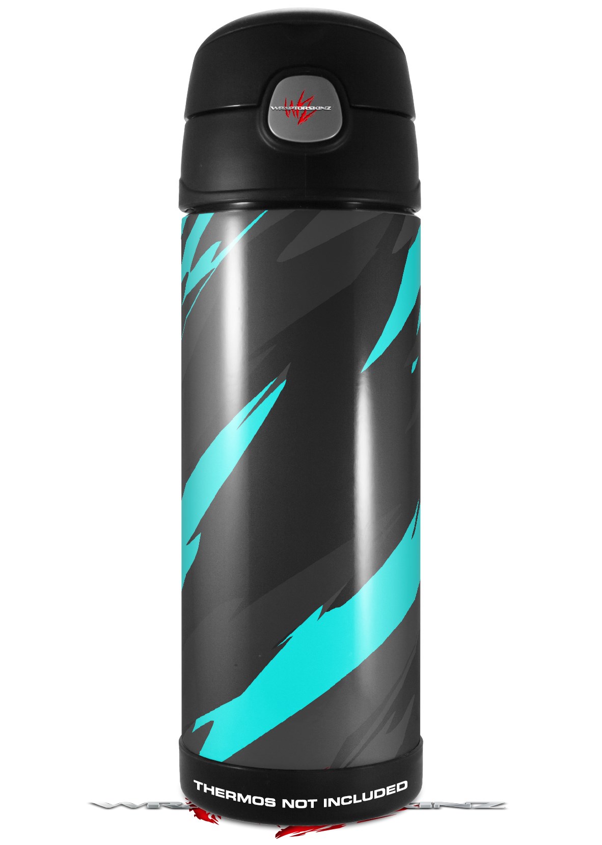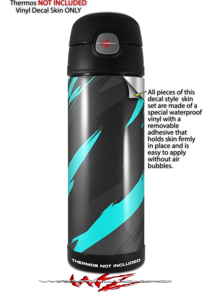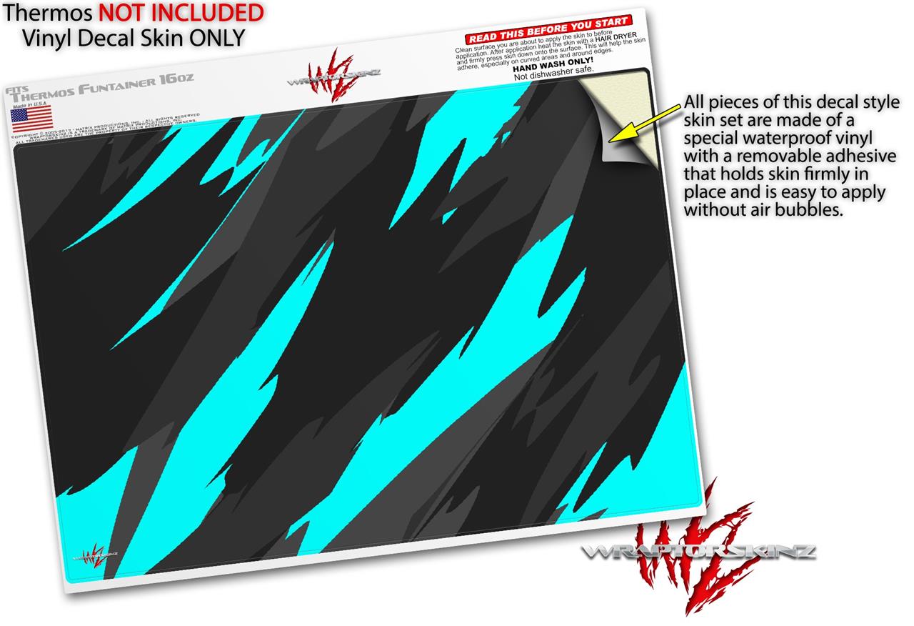 Skin Decal Wrap for Thermos Funtainer 16oz Bottle Jagged Camo Neon Teal (BOTTLE NOT INCLUDED) by WraptorSkinz