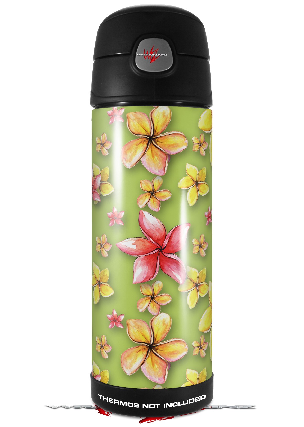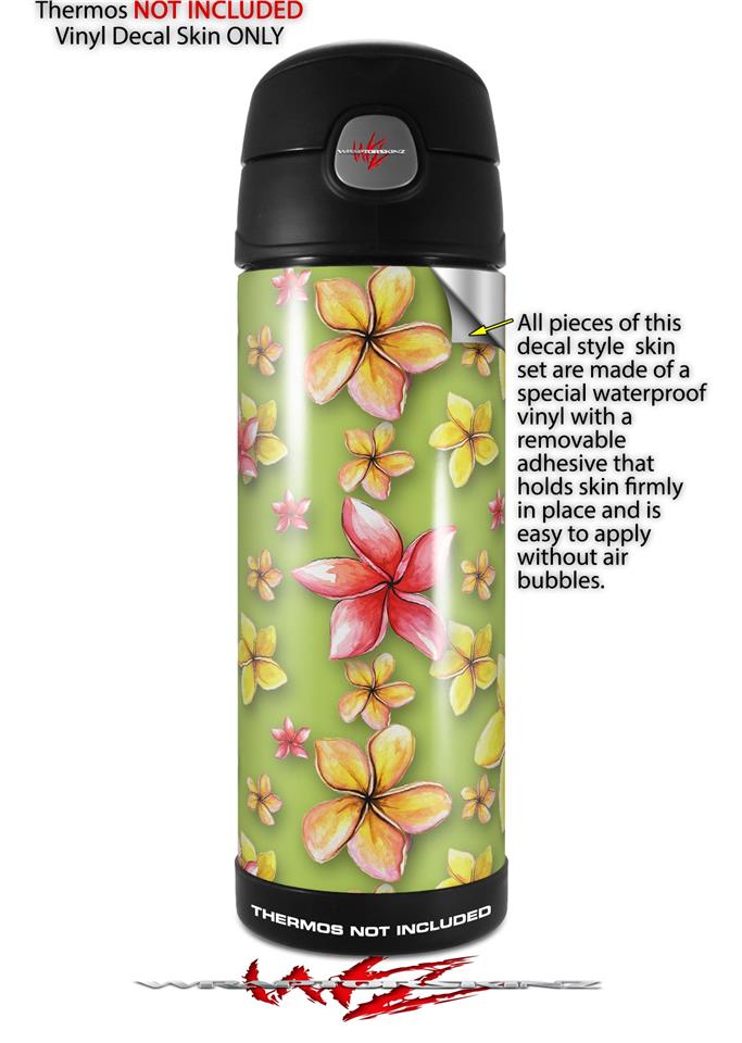 Skin Decal Wrap for Thermos Funtainer 16oz Bottle Beach Flowers Sage Green (BOTTLE NOT INCLUDED) by WraptorSkinz