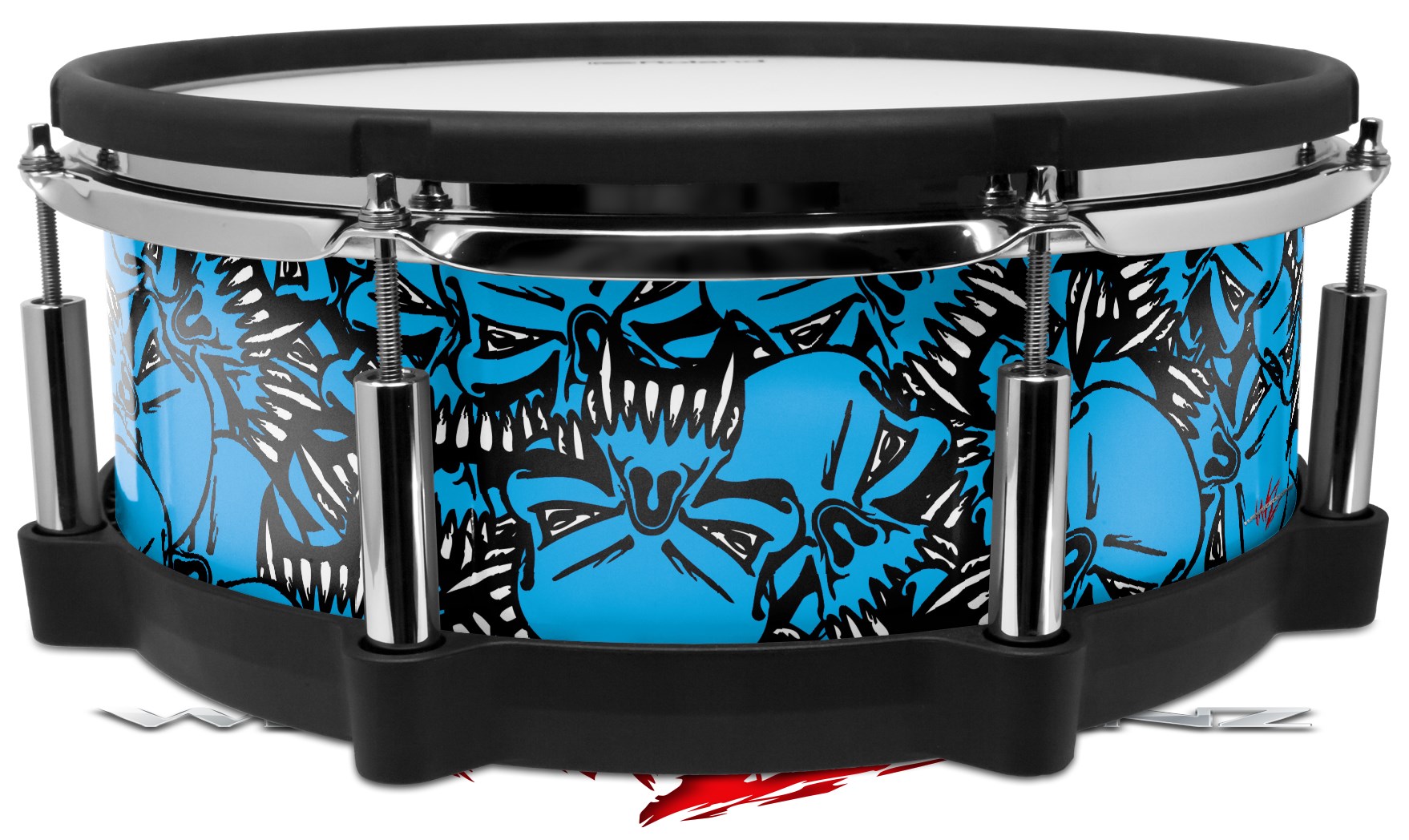 Skin Wrap works with Roland vDrum Shell PD-140DS Drum Scattered Skulls Neon Blue (DRUM NOT INCLUDED)